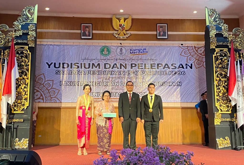 Acara dilanjutkan dengan penyerahan penghargaan kepada para yudisiawan/ti terbaik dari masing-masing Prodi. Lulusan terbaik program Sarjana diraih oleh : Prodi PPKN atas nama Ni Made Adhi Dwindayani, S.Pd., Prodi Pendidikan Bahasa Indonesia atas nama I Putu Radian Wahyu Pramudya, S.Pd., Prodi Pendidikan Bahasa Inggris atas nama Ni Putu Juliani, S.Pd., Prodi PGSD atas nama Ni Made Widiastini, S.Pd.