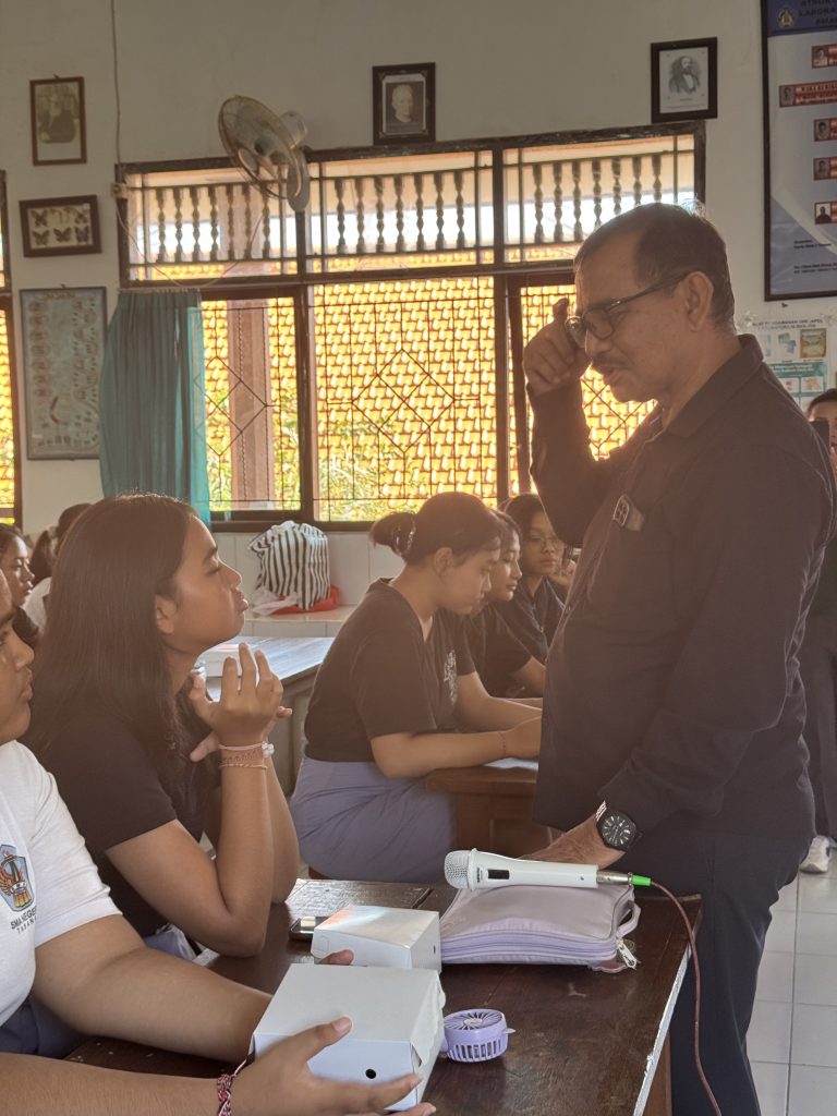 Workshop ini diikuti oleh para siswa yang tergabung dalam ekstrakurikuler Karya Ilmiah Remaja (KIR) dan jurnalistik, dengan tujuan membekali mereka kemampuan menulis ilmiah sejak dini. Dalam pemaparannya, Dr. Suar Adnyana menekankan pentingnya menemukan ide yang orisinal dan relevan dengan kehidupan remaja sebagai langkah awal menulis karya ilmiah. “Ide kreatif tidak selalu muncul dari hal besar. Justru, banyak penelitian menarik berawal dari pengamatan sederhana terhadap lingkungan sekitar. Kuncinya adalah kepekaan dan rasa ingin tahu,” ujar Dr. Suar Adnyana di hadapan peserta.